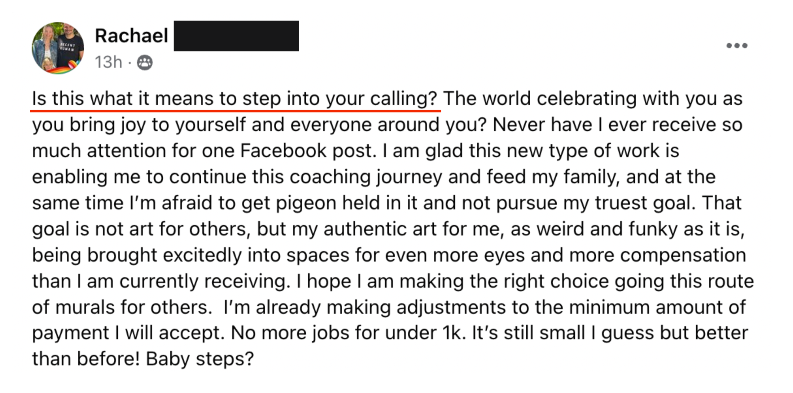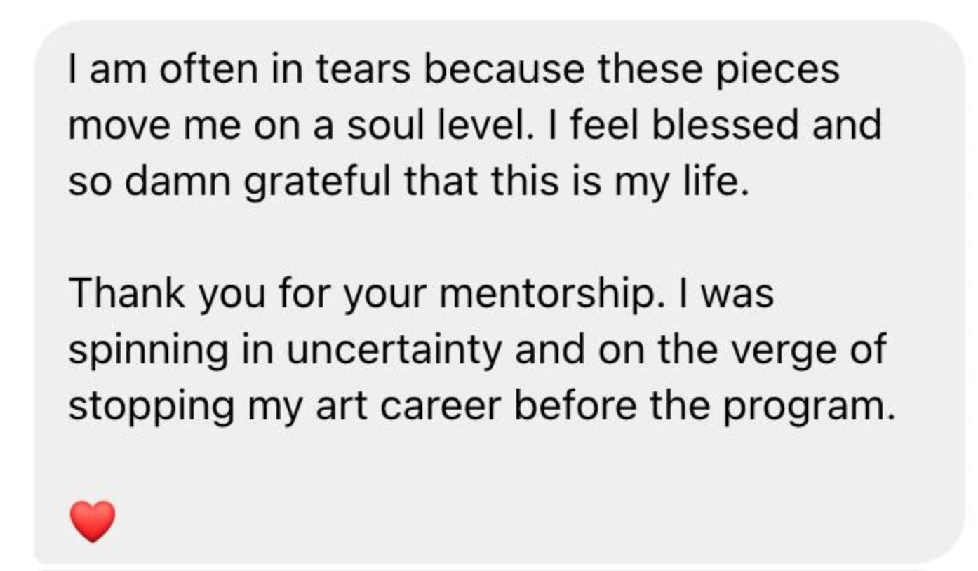 They raised their prices. They made the work that felt “too much.” They boldly asked for what they wanted. They claimed opportunities they once thought were out of reach. They became the artists they were always meant to be — the ones they had been hiding from.